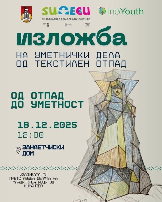 Visitors will have the opportunity to explore unique artworks created from textile waste, including a striking sculpture in the form of the Woman Fighter โ a recognizable symbol of the city of Kumanovo. The SUDECU youth actively participated in the preparation of this exhibition and will have the opportunity to present their own works.